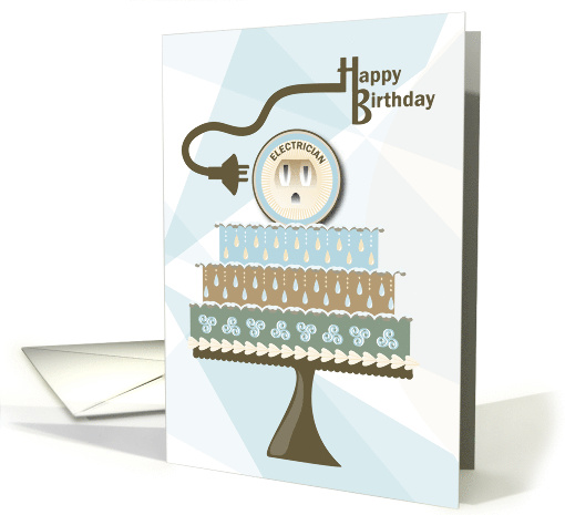 | Artist Notes: | Illustrated Happy Birthday card for an Electrician. Tiered cake on a pedestal topped with a receptacle and plug. The plug reaches to the words Happy Birthday. |