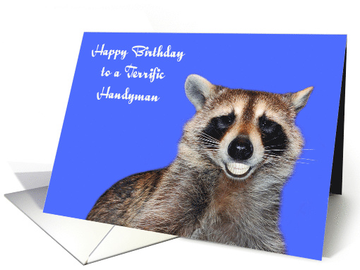 | Title: | Birthday to Handyman, Raccoon smiling with pearly white dentures |