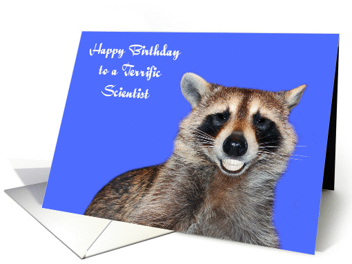 | Title: | Birthday to Scientist, Raccoon smiling with pearly white dentures |