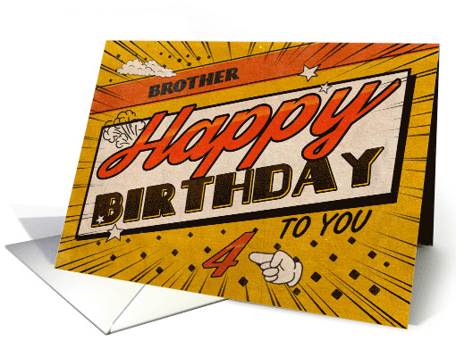 Your brother is sure to love this comic book style happy 4th birthday greeting featuring stars,word art,cloud,and sunburst lines, all with a vintage feel.