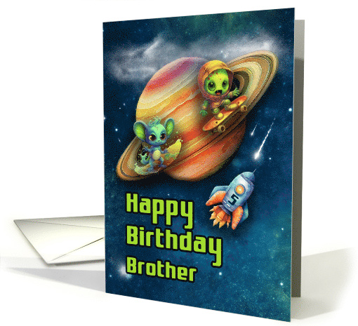 Your brother is sure to get a kick out of this 5th birthday greeting featuring two skateboarding aliens in outer space!