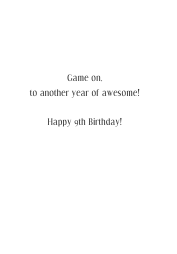 Give your brother awesome 9th birthday wishes with this futuristic looking video game design that is sure to appeal to a young tween boy.