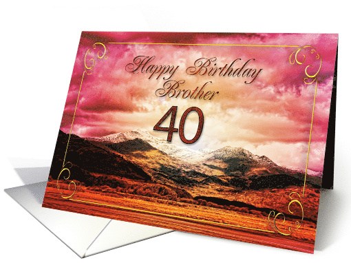 40th birthday card for a brother. A glorious sunset with majestic mountains. A memorable card to give to a special brother. The View is of Snowdonia in Wales.