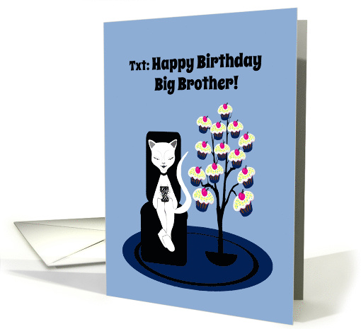 | Title: | Big Brother Birthday Humor Funny Texting Cat with Cupcake Tree |