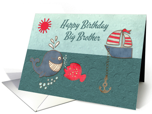 | Title: | Happy Birthday Big Brother Cute Whale & Fish with Boat Nautical Theme |