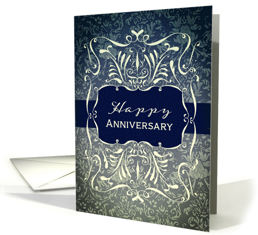 Happy Anniversary, Employee Anniversary Card, Swirls and Damask