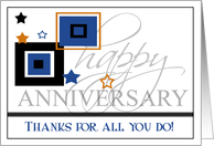 Thank your employees for their hard work with our selection of over 500 Employee Anniversary Cards. All cards can be personalized by adding your own text on the inside of the card. There is no minimum quantity required to place an order on our site. Orders are shipped the next business day and same day in-store pickup is also available!