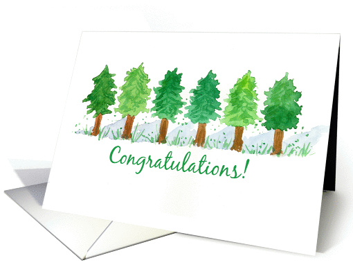 A congratulations greeting card for an employee of the month recognition with a row of trees painted in watercolor. The inside message/information can be changed to fit your needs.