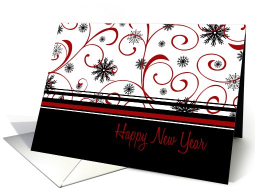 Business Happy New Year for Customer Card - Red, Black & White Snow