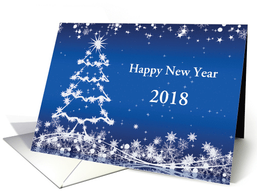 Business New Year - Christmas white tree, snowflakes, stars on blue