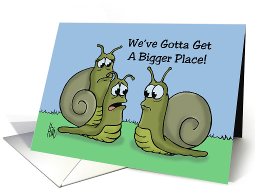 | Artist Notes: | Congratulations on getting your real estate license card, with a cartoon of two snails sharing the same shell to another snail. He says, We've gotta get a bigger place! Inside says, Congratulations on getting your real estate license. Now you can help people find the right home for them! |