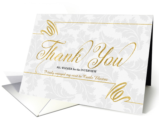 Title: | Interview Thank You Faux Gold Leaf on Silvery Damask Blank |