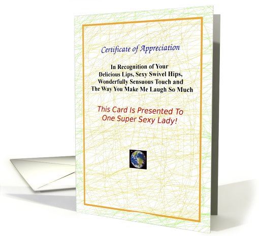 A certificate of appreciation card will be happily received by anyone doing a good job in the uh, well, wherever people can find to do 'it'.