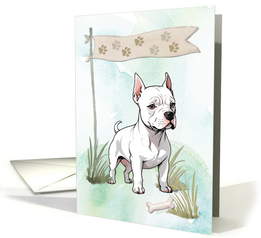 The powerful yet loyal Dogo Argentino comes to life in this watercolor-style design. With a blank inside, it’s an all-occasion way to send a personalized greeting to any dog enthusiast.