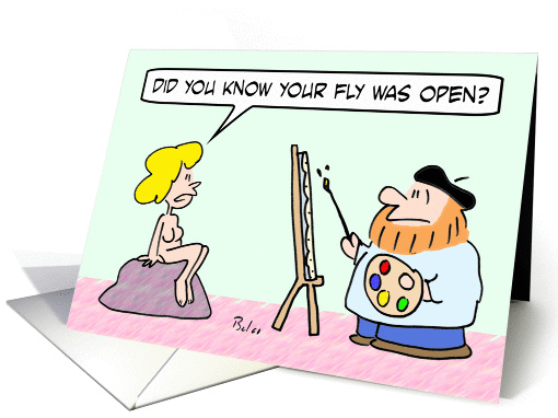 Artist's fly is open.