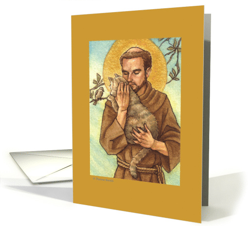 | Artist Notes: | Blank note card with watercolor image of St. Francis of Assisi holding a tabby cat for your personal message |