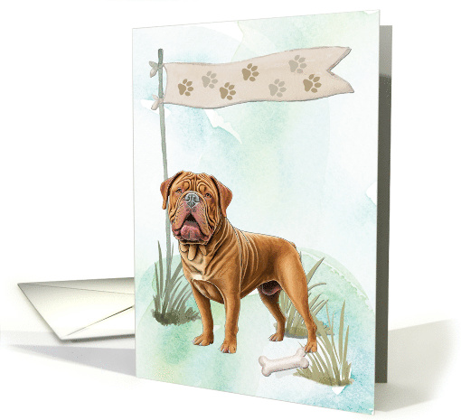 Featuring the impressive Dogue de Bordeaux, this design blends soft watercolor tones with the breed’s distinctive strength. A blank inside allows for any occasion message, making it a thoughtful choice for mastiff fans.