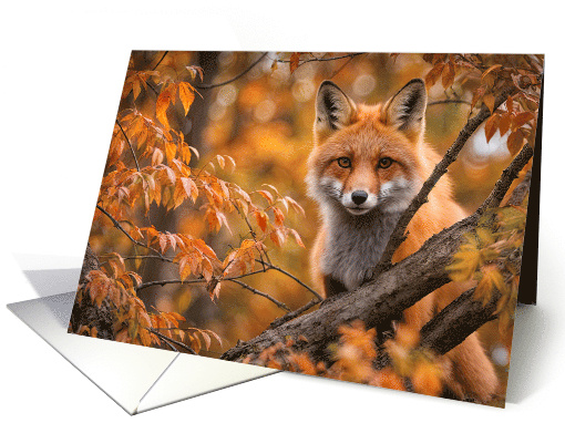 | Title: | Red Fox in Autumn Colored Leaves Tree Blank Any Occasion Note |