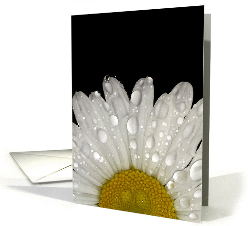| Artist Notes: | Quenching raindrops rest gently on the soft pearly white petals of this Montauk Daisy. A pretty blank card to write your thoughts and feelings to a special person in your life. |