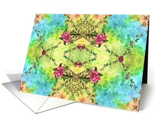 | Title: | Blank Note Card, Victorian Rose Scroll Pattern |