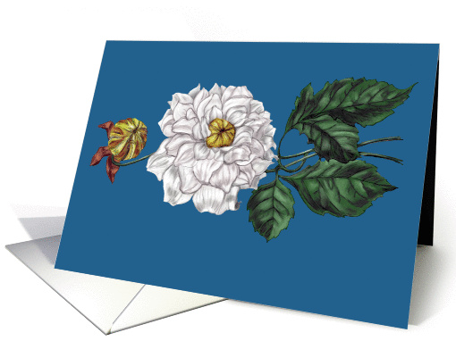 | Artist Notes: | A blank note card to add your own inside text to. Thjis card is so pretty it will be a "keeper". The design is a on a peacock blue background. It features a single large white blossom and pod on a leafy branch.I am not sure what this flower is but it resembles a magnolia. All the elements of this design are digital and will be printed on the card. This card design is by Sandra Fann http://www.greetingcarduniverse.com/grandmasandy |