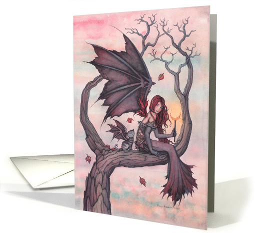 Autumn Fairy with Winged Cat Blank Inside by Molly Harrison