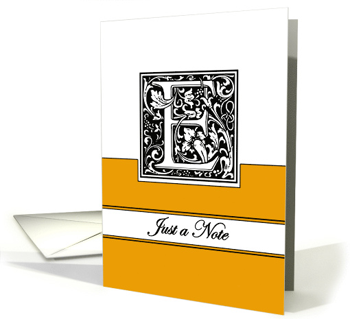 A monogram of the letter "E" based on the work of William Morris (Arts & Crafts Movement) is featured on the cover of this blank note card. Saffron yellow orange accent color. Monogram courtesy of Kuba/OpenClipArt. Image and verse copyright © Shoaff Ballanger Studios, 2014.
