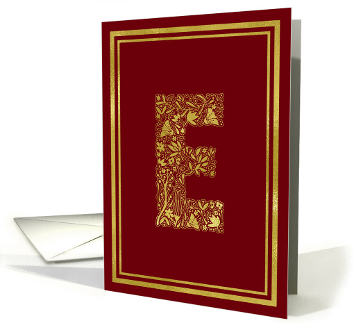 A monogram letter "E" specially made for any occasion where you need to send a greeting card. Letter has a mix of floral patterns arranged to read out the letter. Card has a gold foil effect. Inside text is left blank for you to personalize your own message.