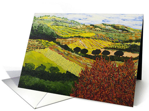 | Title: | Blank Note Card -Red Bush and Vineyards |