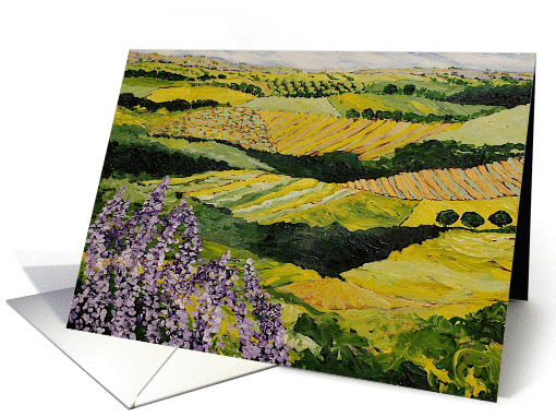 | Title: | Blank Note Card - Fields, Vineyards, and Purple Wildflowers |
