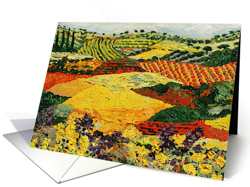 | Title: | All Occasion Blank Note Card - Red and Yellow Fields |