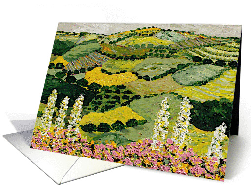 | Title: | All Occasion Blank Note Card - Pink and White Flowers and Fields |