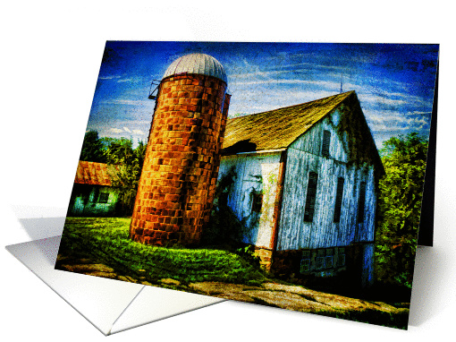 | Title: | Vintage Silo and Barn - Blank Note Card - Country |