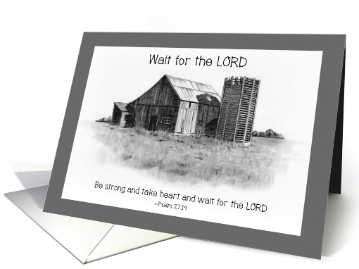 | Title: | Religious Bible Verse Wait For Lord Blank Inside with Old Barn |