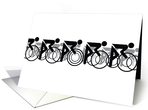 | Artist Notes: | Teams of cyclists in formation rush past during a bicycle race. Black on white version. |