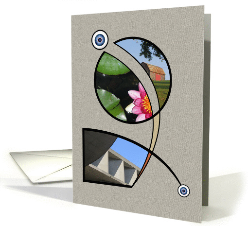 This abstract design uses the image of an eyeball to suggest looking at the landscape for all that might be beautiful. It's my own design and photographs. I'd like to provoke people to look at the landscape around them with a curious eye.