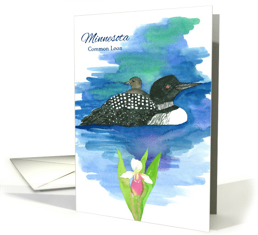 | Title: | State Bird of Minnesota Common Loon Lady's Slipper Watercolor |