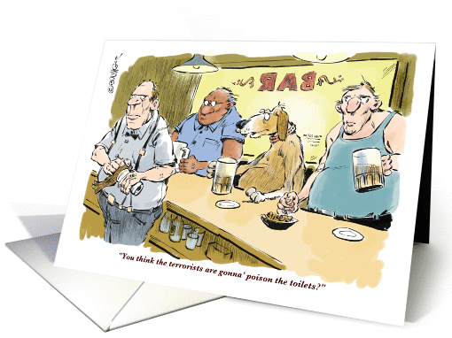 | Title: | Funny blank doggie and bar conversation about terrorists cartoon |