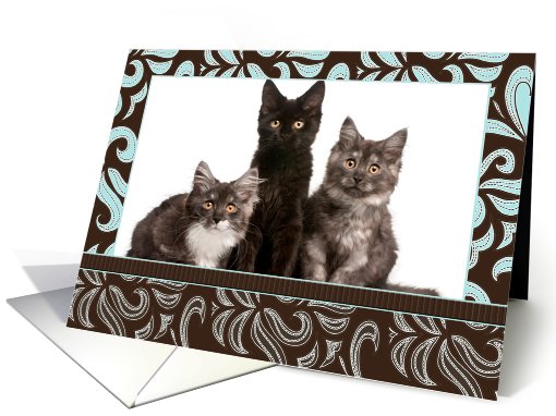 | Title: | Aqua and Chocolate Flourishes, Any Occasion - Blank Inside, Photo Card |