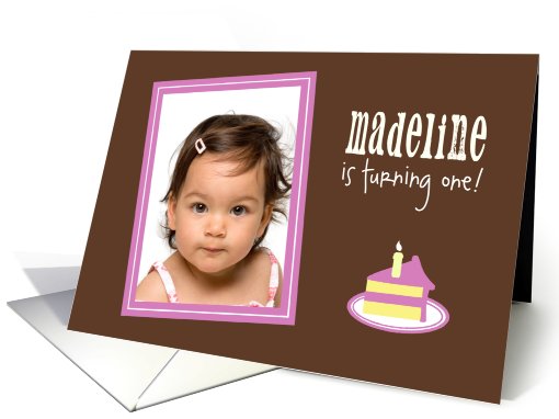 | Title: | Baby Girl Turning One Year Old Cake Slice Photo Card |