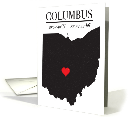 | Artist Notes: | Image of the state of Ohio with a Heart where Columbus, Ohio is located on the map with the GPS Coordinates of the city below. Show how much you love Columbus, Ohio with this Columbus GPS coordinates blank card. Original Design by Gregory Slocum ©2022 |