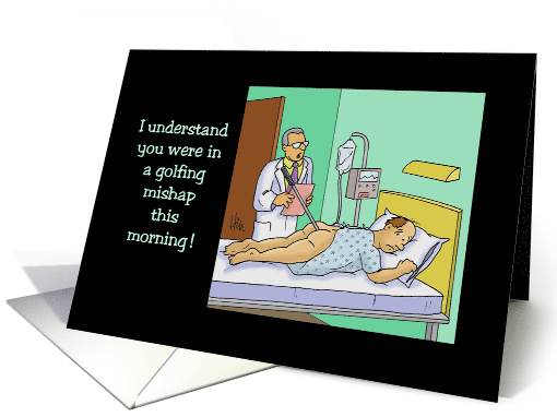 | Artist Notes: | Blank Note card with a cartoon showing a doctor talking to a patient with a golf club inserted up his butt, The Doctor says, I understand you were in a golfing mishap this morning! |