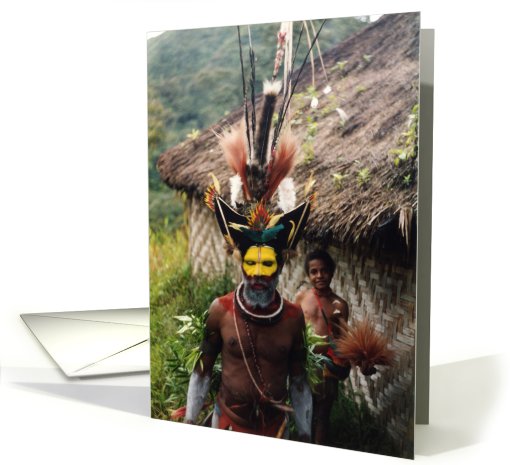 Huli man of Papua New Guinea, wigs contain feathers from Birds of Paradise. My husband took this photograph on his trip to Papua New Guinea