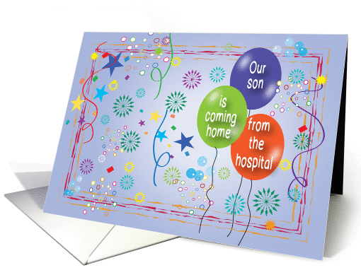 | Artist Notes: | This is an announcement of a son coming home from the hospital, featuring balloons, confetti, and streamers. You can change the inside message at checkout, if you wish. 010312 |