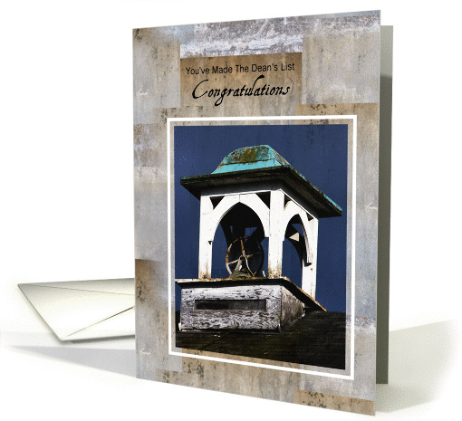 | Artist Notes: | A congratulations on making the dean's list card with a photograph of a rusted bell of an old schoolhouse. Receiving this honor requires a lot of hard work and dedication and deserves recognition for this academic achievement. |