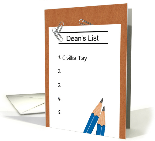 | Inside: | Congratulations on making the Dean's List Well done! |