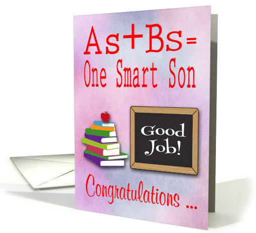 | Artist Notes: | Congratulate your son for getting on the honor roll with a adorable funny card featuring school books, chalkboard, and red text on a pretty tie dye background. Inside like all Greeting Card Universe cards can be personalized by you if you wish to give it your personal touch. |