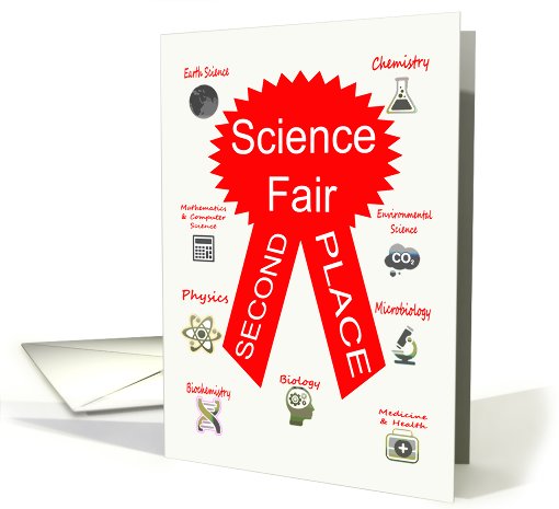 | Artist Notes: | Congratulate someone for getting second place in the Science Fair with a red, second place ribbon. Background is white decorated with different fields of science. |