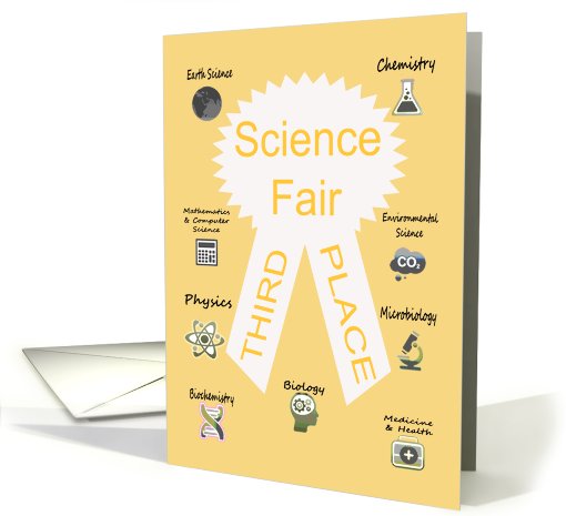 | Artist Notes: | Congratulate someone for getting third place in the Science Fair with a white, third place ribbon. Background is gold decorated with different fields of science. |