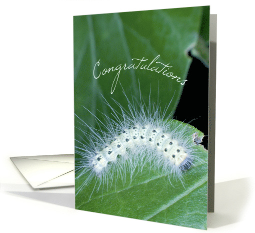| Artist Notes: | Photographic Congratulations card for academic achievement. A single white hairy caterpillar on an eaten leaf. Insect theme. Appropriate for science fairs. |